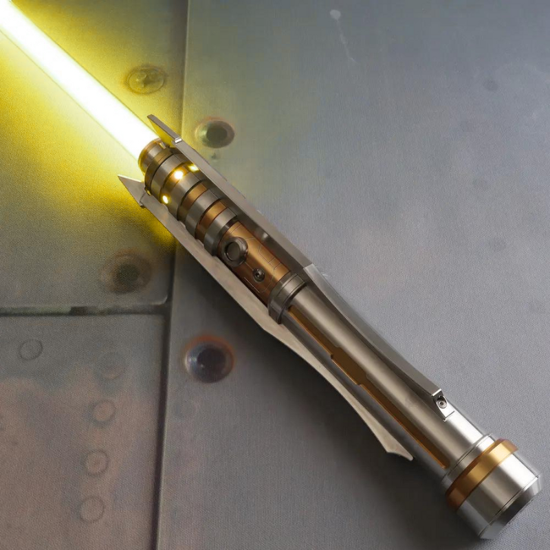 Yellow – In the Expanded Universe, yellow lightsabers are known as the preferred accessory of the Jedi Sentinel. In canon, these blades are often linked to Jedi Temple Guards, who wielded yellow lightsaber pikes as symbols of their duty. The meaning of the yellow lightsaber represents balance, resourcefulness, and a commitment to justice without being bound by rigid doctrine. Notable wielders include Ahsoka Tano, who briefly used a yellow-green shoto saber, Asajj Ventress, who wielded a yellow blade after leaving the Dark Side, and Rey Skywalker, who ignited her own yellow lightsaber at the end of Star Wars: Episode IX – The Rise of Skywalker.