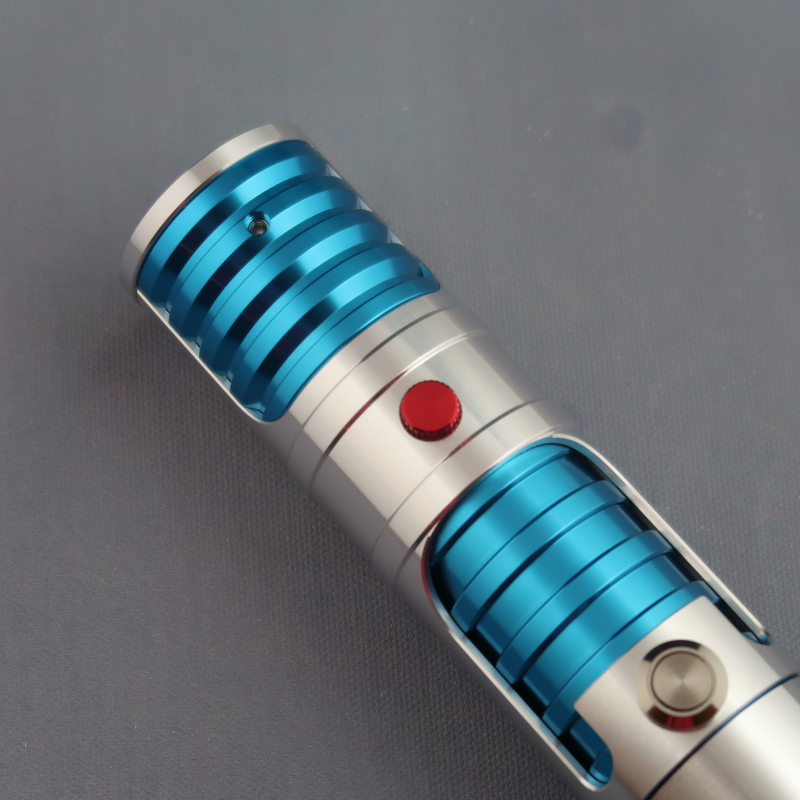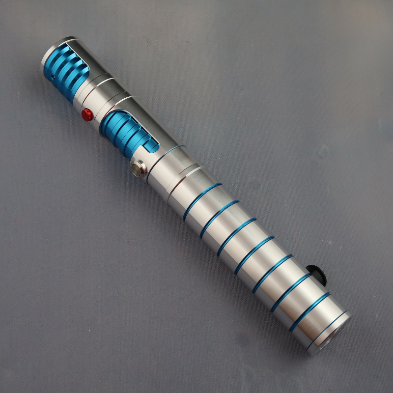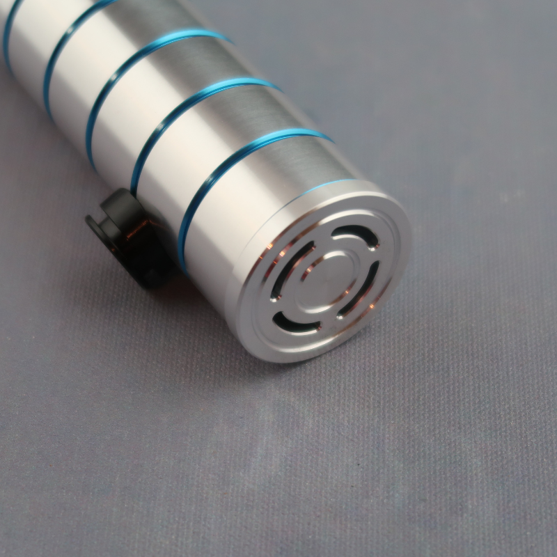 The Azure Enigma is a meticulously crafted silver hilt that exudes elegance and sophistication. Its sleek design is accentuated by the intricate blue detailing and grooves, adding a touch of mystery to its overall appearance. The hilt features a striking red decorative knurled screw, which not only serves as a visual highlight but also adds a unique element of style. Additionally, the Azure Enigma boasts a silver Non-Illuminated AV Switch, ensuring seamless functionality while maintaining its sleek aesthetic. With its combination of exquisite design and attention to detail, the Azure Enigma is a must-have accessory for any discerning collector. All come standard with a Belt Clip Wheel.
