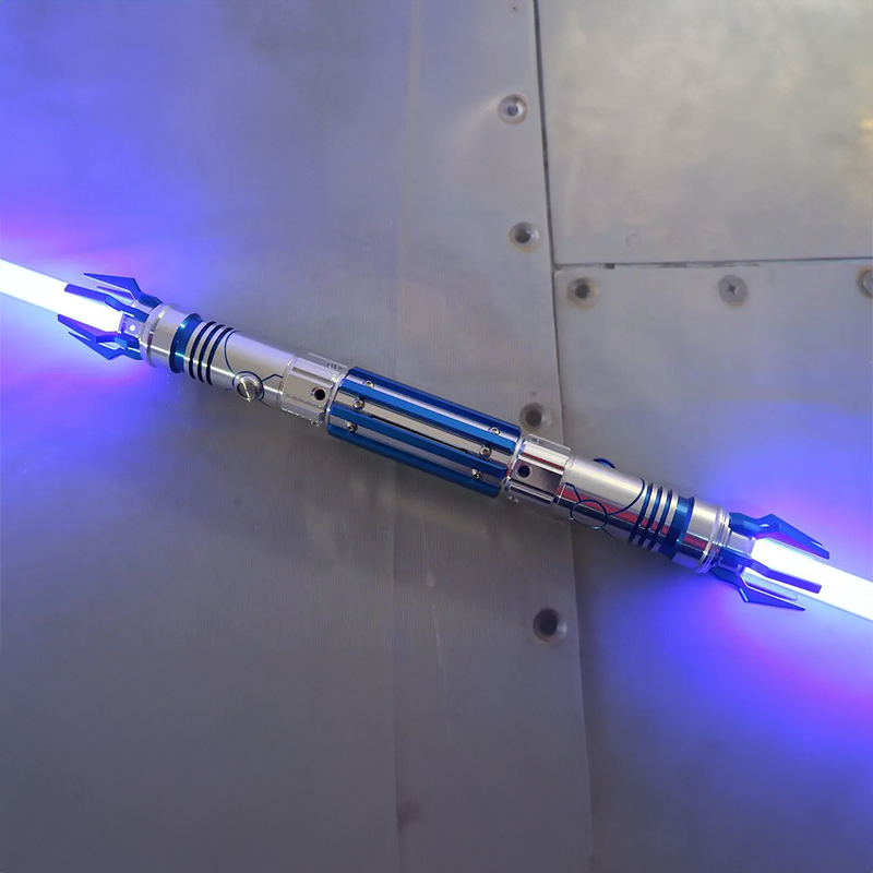 The Dominicide is the first double-bladed lightsaber set within a single unit to grace the Ultrasabers line-up, and we've anodized its key features in our brilliant, beautiful blue color to bring you its sister saber, the Azure Dominicide. The saber features TWO MHS Compatible emitters wreathed in menacing claws, and a comfortable ridged grip that spans across its midsection. Both sides of the hilt features beautifully integrated venting for sound, allowing for maximum resonation in every battle. Batteries on each Dominicide are housed in a removable compartment within the midsection of the saber, allowing us to pack all of our favorite double-bladed features into the space of a single hilt. Each Dominicide will come standard equipped with a covertec wheel and a non-illuminated AV switch, settled opposite one another on the saber's hilt to let the saber hang comfortably from your belt.