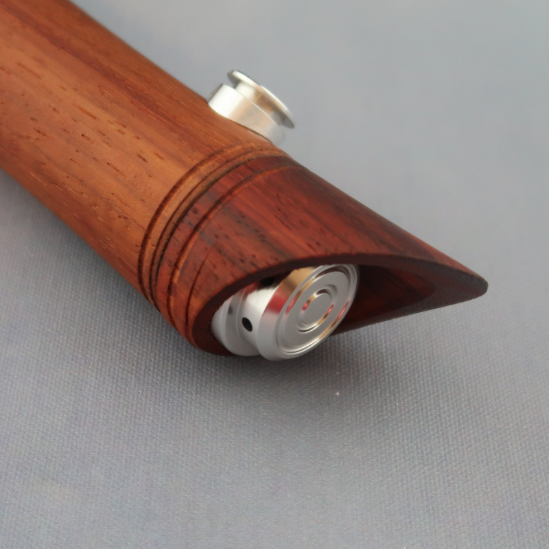 The Brylark LE is a beautifully crafted product that boasts an elegant wooden body, which is accentuated by metal inlays below the switch. The emitter features beautiful etchings, while the blade holder has windows that add to its overall aesthetic appeal. With the inclusion of two blade holders, this can accommodate a regular 1" outer diameter blade and a skinny blade, users have the flexibility to choose the perfect blade for their needs.