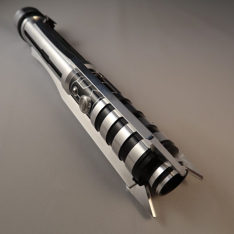 The Butcher's control section might be one of our favorite features on an Ultrasaber yet- Every Butcher features a precisely machined pattern engraved around the switch section, wrapping all the way around the hilt and adding a unique bit of detail to the AV Switch, recharge port, and a decorative button screw.