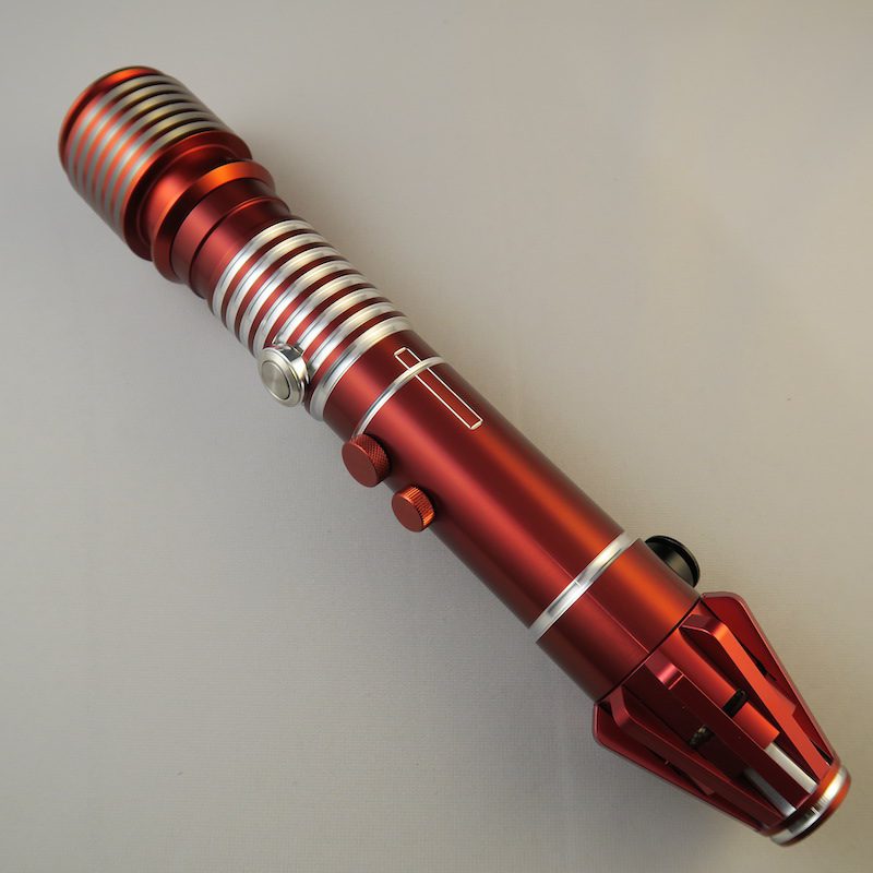 Two familiar buttons line the front of the saber's body below its switch, while jeweled screws decorate the back of the saber. Simple matching machined detailing on the left and right of the hilt gives the Crimson Dorinian a simple flair not seen on many sabers in the Ultrasabers arsenal.