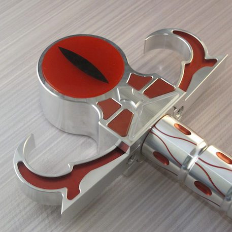 And then to set the entire saber off is the amazing emitter. The design and machining job on the emitter is absolutely awesome. The claws are firm and secure and provide a very unique looks to the entire saber with how they are mounted. The emitter comes with a front and a back disc that act as huge red color filters allowing light to pass through them for added flare. You can also get these discs with the cat design, eye design, or blank to match your taste. NO ONE is going to overlook you with this bad boy hanging from your belt or being wielded in your hands. Ultrasabers Crimson Omen stands out and will gain all the attention it deserves.