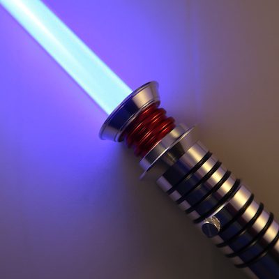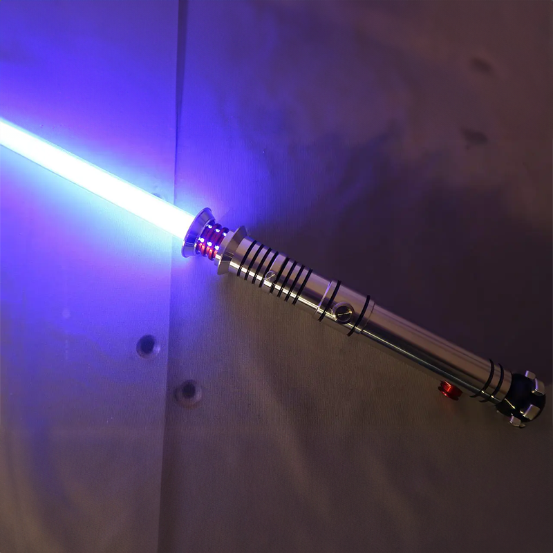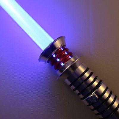The Crimson Savior immediately commands attention with its boldly colored emitter that rests perfectly atop the slender silver hilt. The Crimson Savior's emitter comes standard in the classic solid style of the Dark Lord who inspired it but is also available with a series pinhole windows that run vertically along the groves of the colored section, giving the lightsaber an all-new look when accented by your ignited blade. The Crimson Savior's emitter is MHS Compatible and is available in four different colors.
