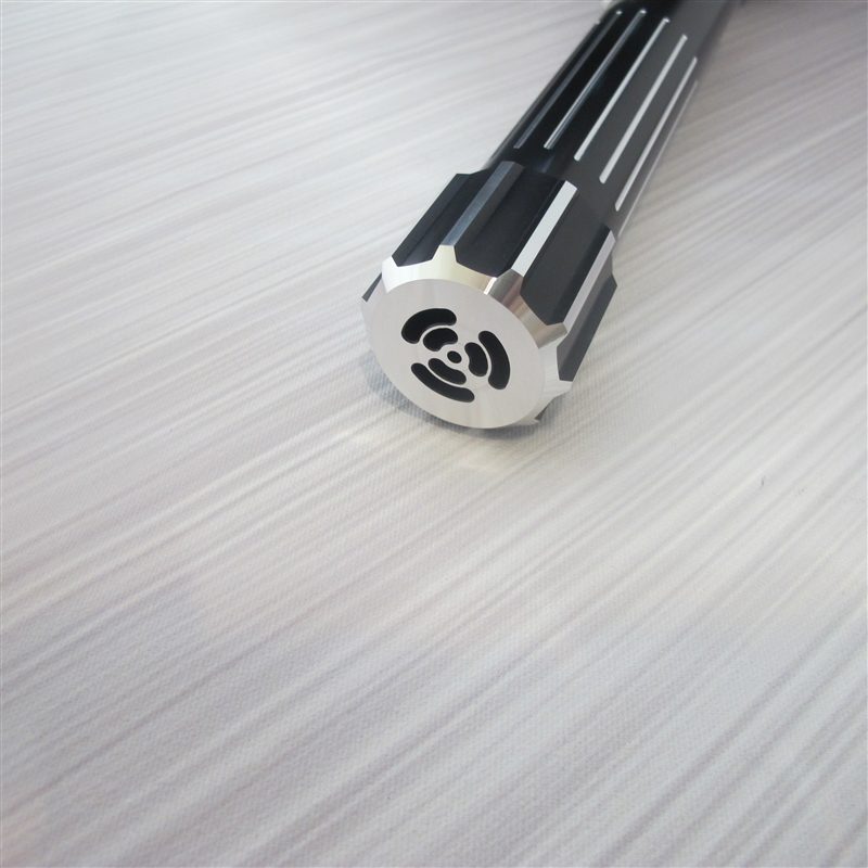 The Dark WarGlaive has also been anodized black and the vertical grooves are machined back silver to add accents to the body. The ridges and base of the pommel have also been machined back silver. Ultrasabers WarGlaive is one of a kind.
