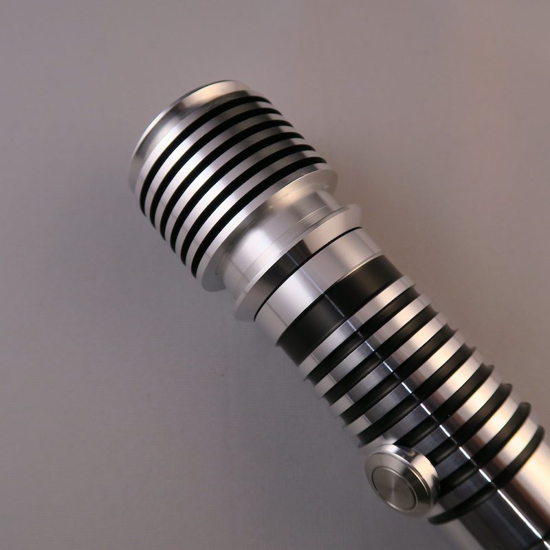 Two familiar buttons line the front of the lightsaber’s body below its switch, while jeweled screws decorate the back of the saber. Simple matching machined detailing on the left and right of the hilt gives the Dorinian a simple flair not seen on many sabers in the Ultrasabers arsenal.