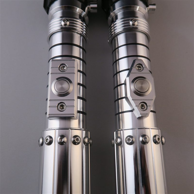 The new Emperor's Hand brings another iconic and loved lightsaber designs to the Ultrasabers lineup. The Emperor's Hand is of course fully made of T6 Aircraft Aluminum and combat ready. This hilt design is everything you would expect from an Emperor's Hand: beautiful, sleek, nimble, elegant, and of course deadly. The emitter is removable & MHS compatible. The screws all around the grip come in two different finishes: Silver & Black. The pommel is removable & MHS compatible and comes in two different versions as well: Silver & Black. And lastly, the activation box is also available in two different versions as well: Angled & Squared. The Emperor's Hand is able to accommodate sound installs, and again has an MHS compatible emitter & pommel as well.