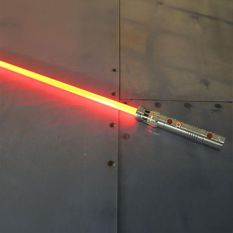 The Menace SE brings one of the most coveted and loved saber designs to the Ultrasabers lineup. The Menace SE is combat ready and made entirely of T6 Aircraft Aluminum. The Menace Lightsaber is available in 5 different finishes: High Polish (SE), Black Anodize (Dark), Red Anodize (Crimson), Blue Anodize (Azure), and Nickel Plated Finish (CE). The emitter is also available in 4 different styles. You can get the emitter underlay in Silver or Black and also with or without Windows. You can stylize your Stunt Menace SE by selecting the lightsaber color of all 3 Knurled Screws on the hilt. The Menace SE is able to accommodate sound installs, and has a MHS compatible emitter & pommel as well.