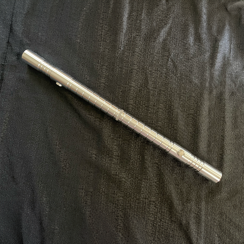 This is the new and greatly improved Ultrasaber's Phantasm. This model is the lightside version of our highly coveted Phantom. The Phantasm is a staff made from two Aeon sabers, so with the release of the Aeon comes the Phantasm. This staff is vastly superior to it's predecessor in many ways. First and foremost, it's made from T6 aluminum instead of PVC plastic, which greatly contributes to its durability and great looks. The coupler that holds the two lightsabers together is flush with the rest of the hilt for excellent feel. The overall width also is reduced for better grip, and the pommels that come with the staff are threaded for easy battery access.