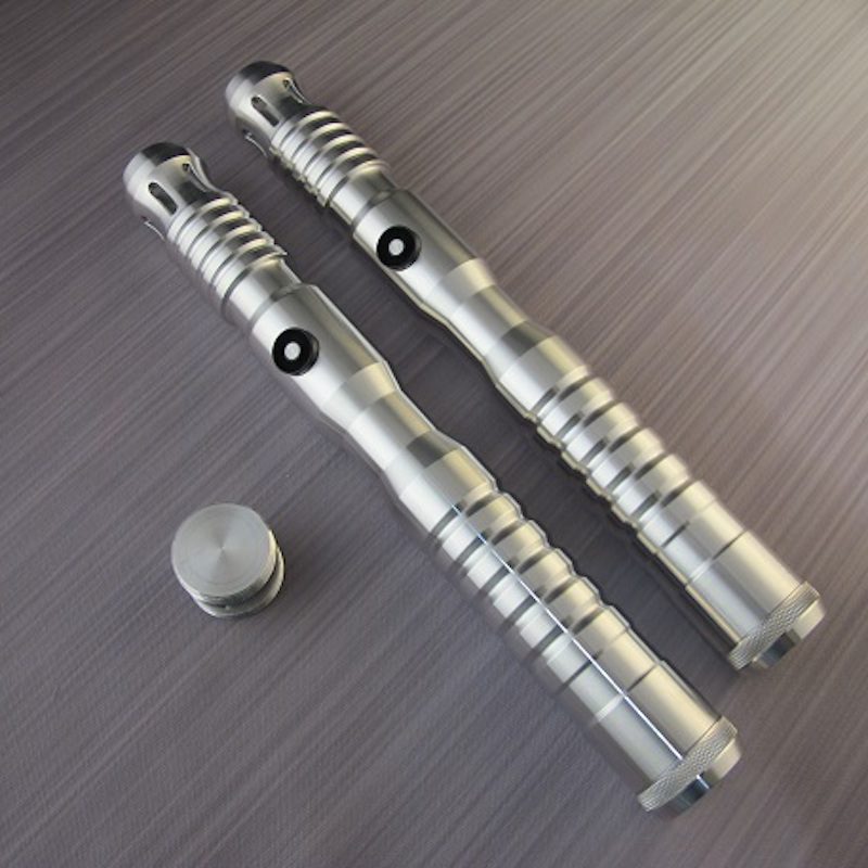 It also is vastly superior to its predecessor in many ways. First and foremost, it's made from aircraft T6 aluminum, which greatly contributes to its durability and great looks. The standard coupler that holds the two lightsabers together is actually hidden inside the sabers and the lightsabers combine together to make one flush double-sided ultrasaber. The pommels that come with the staff are threaded for easy battery access. They are also MHS compatible which means you have a vast selection of unique and premium pommels to use with your saber when dual wielding.