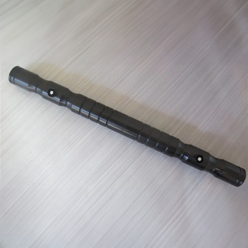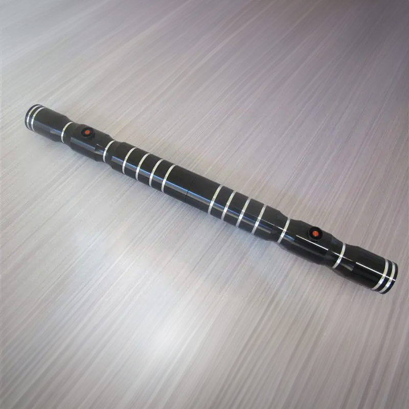 This staff is vastly superior to it's predecessor in many ways. First and foremost, it's made from black anodized aluminum, which greatly contributes to its durability and great looks. The standard coupler that holds the two sabers together is actually hidden and the sabers combine together to make one flush double sided ultrasaber. The pommels that come with the staff are threaded for easy battery access. They are also MHS compatible which means you have a vast selection of unique and premium pommels to use with your saber when dual wielding.