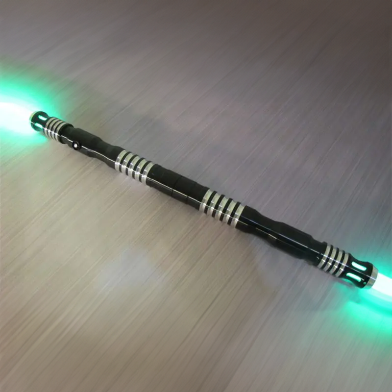 This staff is vastly superior to it's predecessor in many ways. First and foremost, it's made from black anodized aircraft T6 aluminum, which greatly contributes to its durability and great looks. The standard coupler that holds the two sabers together is actually hidden inside the sabers and the lightsabers combine together to make one flush double sided lightsaber. The pommels that come with the staff are threaded for easy battery access. The pommels are also MHS compatible which means you have a vast selection of unique and premium pommels to use with your lightsaber when dual wielding.