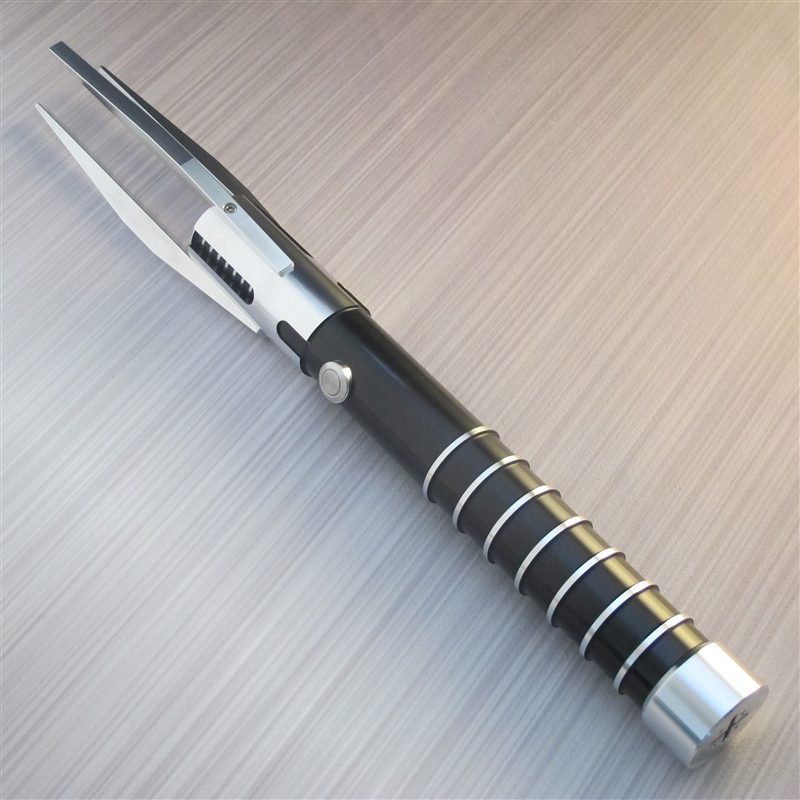 The Raven comes with 3 unique Raven's Claws, available in two different versions. Our normal version adds 5.75 inches to the length of the saber, while our Super Sith (SS Edition) Edition adds 7.75 inches to the height of the saber- and it looks awesome. These are some well machined, high quality claws that will get your saber noticed! Fear not! The Raven's Claws are sturdy, well mounted and made for combat. However, if the situation calls for it, they are easily removable.