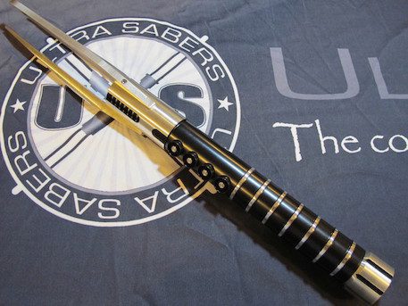This saber also comes with 2 choices of pommels. One plain silver pommel that goes very well with the saber and helps accent the entire body. And a Super Sith (SS Edition) pommel featuring black grooves and a black bottom to help add to the overall look of the entire hilt.