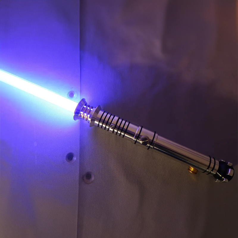The Savior immediately commands attention with its boldly colored emitter that rests perfectly atop the slender silver hilt. The Savior's emitter comes standard in the classic solid style of the Dark Lord who inspired it but is also available with a series pinhole windows that run vertically along the groves of the colored section, giving the lightsaber an all-new look when accented by your ignited blade. The Savior's emitter is MHS Compatible and is available in four different colors.