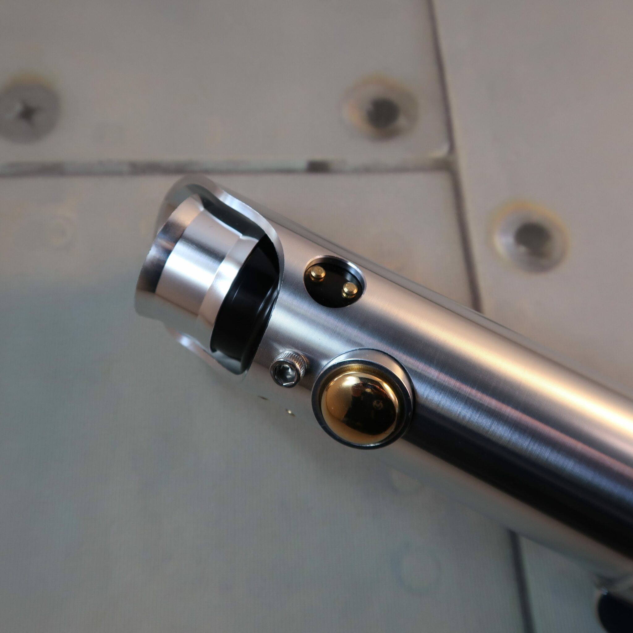 Every one of Ultrasabers Graflex Lightsabers comes standard with an Anti Vandal switch and a switch activation box. This means you can get your sabers without sound WITH an Anti Vandal switch! The pommel is MHS compatible and vented for sound. And of course, this saber is built with high quality T6 aircraft grade aluminum. Just like all Ultrasabers, the Graflex SE It will stand up to rigorous use time and again.