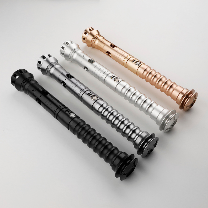 The Xeno DP Beacon is a lightsaber that draws attention with its glowing windows in both the emitter and body. Available in four striking finishes—Grey, Gold (LE), Black (Dark), and Silver (SE)—this saber offers options for every collector’s taste. Its stacked pommel provides perfect balance for the bold emitter while enhancing the overall look. With meticulous craftsmanship and a design built to impress, the DP Beacon is a must-have for anyone seeking a visually stunning and highly functional saber.