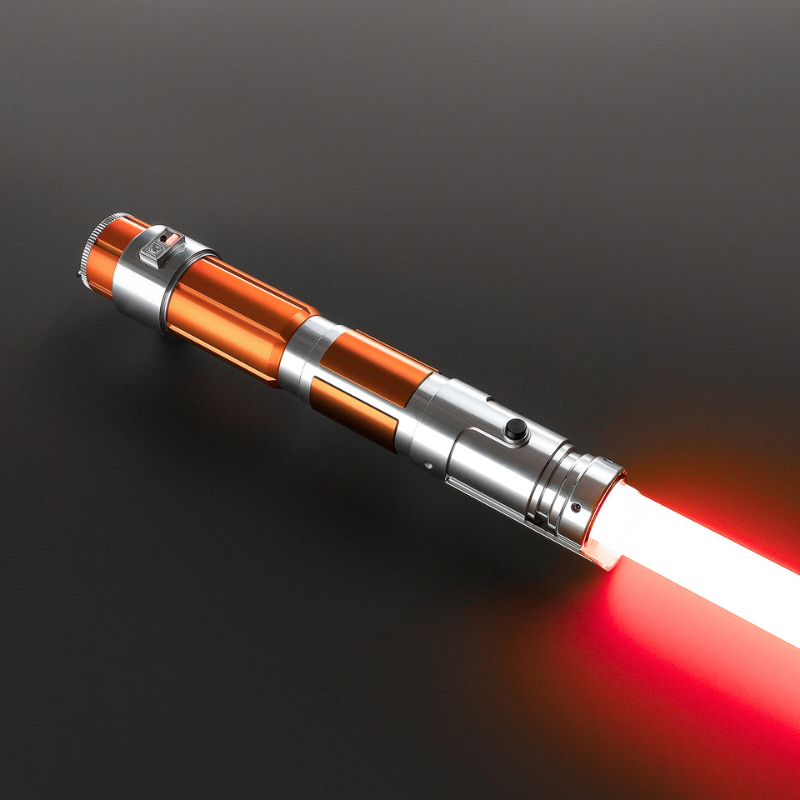 The Xeno DP Authority is a lightsaber built to command attention. Its silver hilt is accented with copper and black, creating a bold, powerful presence. A shielded emitter on one side adds a distinctive twist that sets it apart from the rest. With a belt clip wheel for easy carry, it’s always within reach when action calls. Whether on display or in the heat of a duel, the Authority makes a statement every time it ignites.