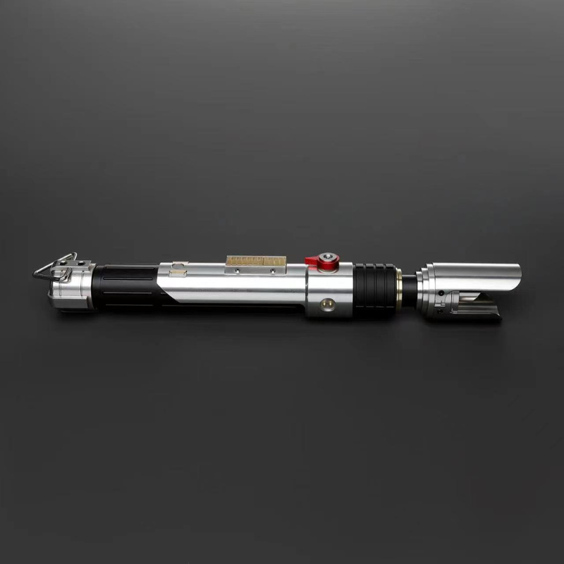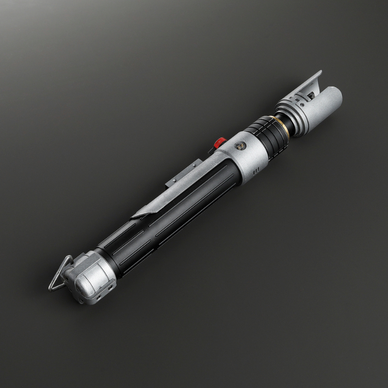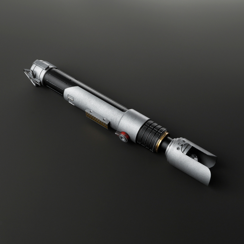 The Xeno DP Boon is a well-balanced lightsaber that pairs striking design with practical features. Its black hilt is accented with silver along the guard, emitter, and pommel, creating a bold, polished look. Fins around the emitter help protect the blade, adding durability for intense duels and training sessions. Finished with a D-ring on the pommel for easy carry, the DP Boon is built for enthusiasts who want a saber that performs just as well as it displays.