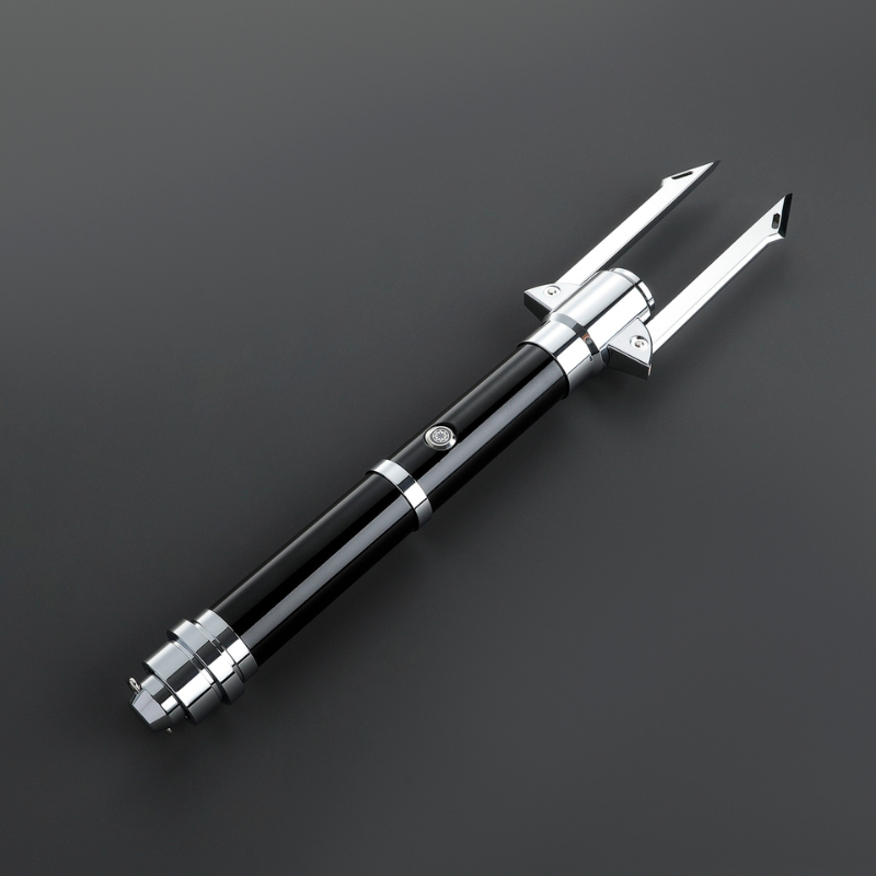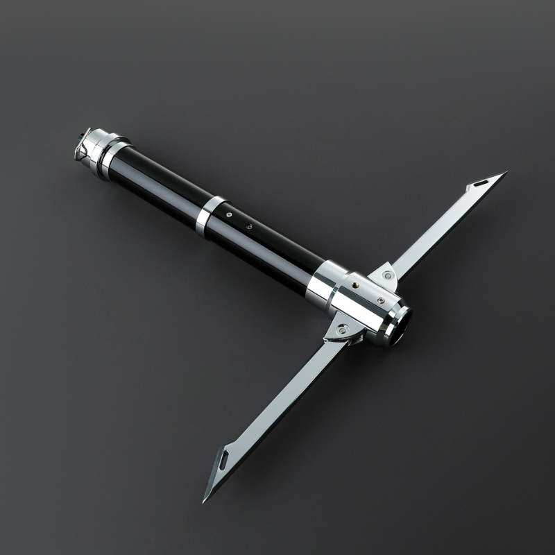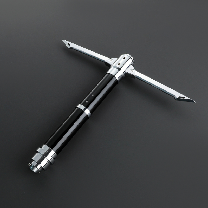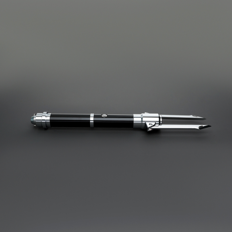 The Xeno DP Falchion combines classic sword design with a touch of futuristic style. The two aluminum crossguards fold along the blade, giving you the option to choose between a more defensive stance or a menacing look for battle. The black body is complemented by sleek silver accents on the emitter and pommel, creating a perfect balance of tradition and innovation. Whether you’re looking to defend or dominate, this saber is ready for whatever the galaxy throws at you.