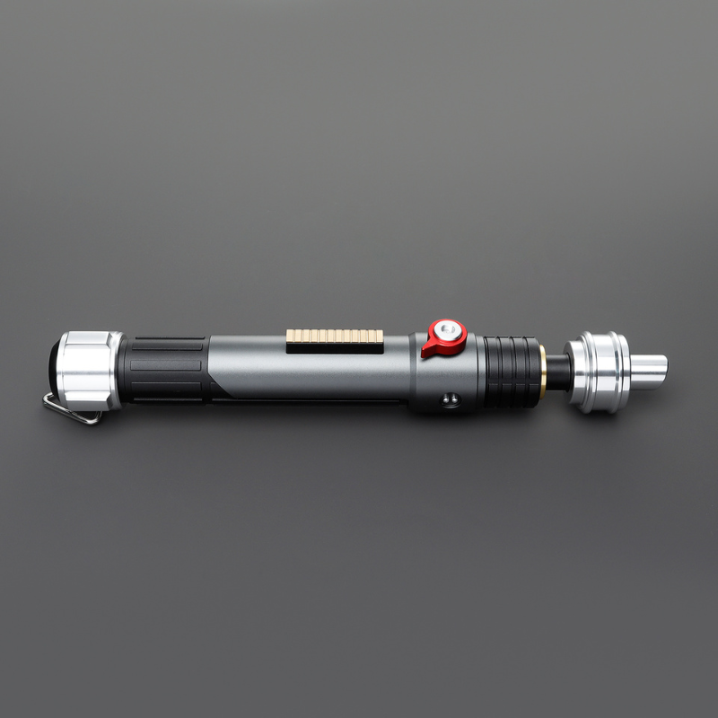 Introducing the Xeno DP Liberator, a sleek and versatile saber that is perfect for both display and cosplay enthusiasts. This stunning lightsaber features a stylish gray, black, and silver finish. It comes with two emitters, one for display that is closer to the design it is inspired by and one that can accommodate a blade. Designed with convenience in mind, the Xeno DP Liberator features a D-Ring on the pommel. This innovative addition allows for easy carrying, ensuring you can take your lightsaber wherever you go.
