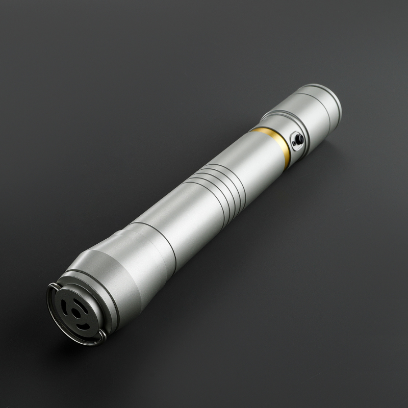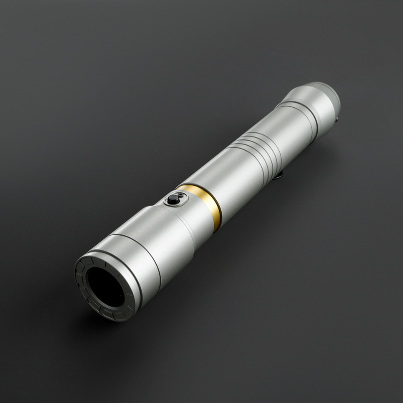 The Xeno DP Prodigy is a sleek, satin-finish silver hilt with a striking gold accent just below the emitter. The black switch and belt clip wheel add a bold touch of contrast. With a D-Ring on the pommel and a belt clip wheel, it’s easy to carry and access whenever you need it. Don’t let the simple design fool you—this hilt was once wielded by a legendary master from the High Republic, making it as powerful as it is stylish. Perfect for any Jedi or Sith looking to channel their inner prodigy.