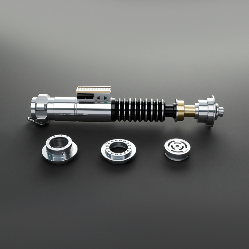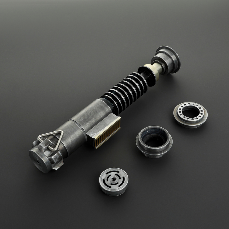 The Xeno DP Knight CE is a lightsaber that blends thoughtful design with versatility. Its silver hilt features black detailing and a copper switch activation box, while a narrow neck accented with copper adds visual interest. Two interchangeable emitters let you customize the look, and a D-ring on the pommel provides convenient carry options. Available in both clean and weathered finishes, the DP Knight CE is built to impress in both display and action.