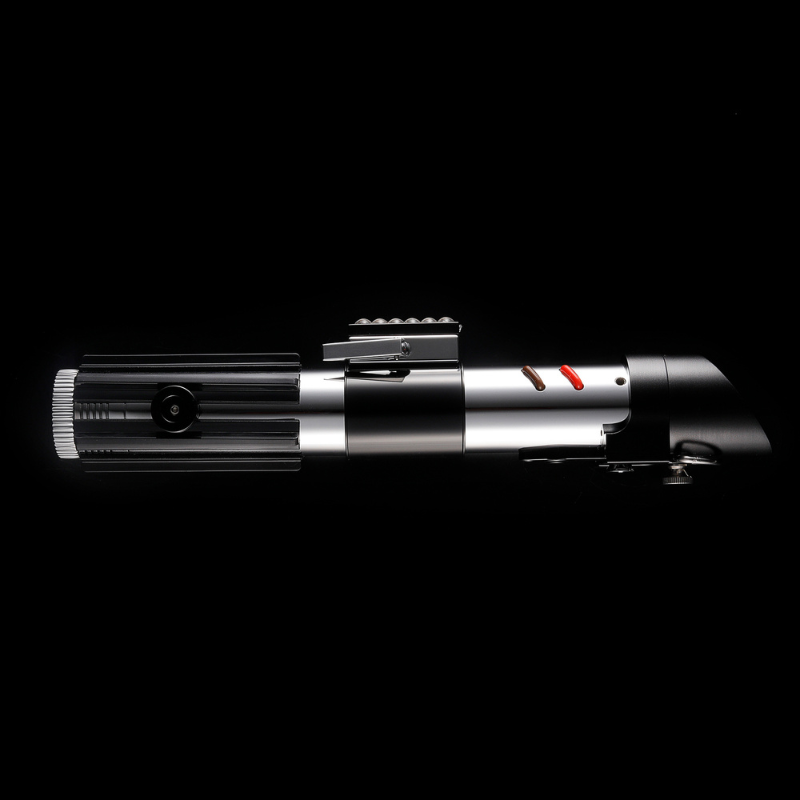 The Xeno DP The Dark One exhibits an aesthetically pleasing design, featuring a polished silver saber harmoniously juxtaposed with a black activation box, grips, and an angled emitter. The allure of this product is further accentuated by the presence of exposed wires, adding an element of intrigue to its overall appearance.